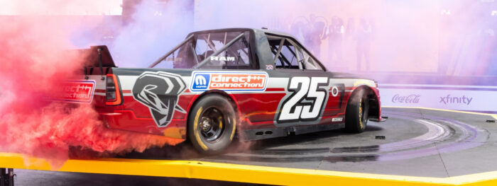 Ram’s return to NASCAR was destined to be bold — CEO Tim Kuniskis is known for his “Hold My Beer and Watch This” style announcements. The creative team at Doner dreamed up a stunt where Tim would announce Ram’s return to the Craftsman Truck Series live at Michigan International Speedway, complete with a working race truck doing doughnuts in front of the stage.